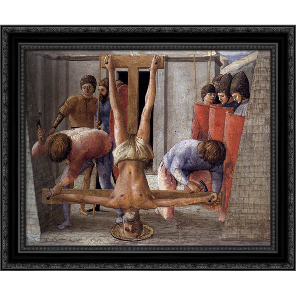 .Peter by crucifixion—peter asked that his cross be inverted so as not to imitate his god, jesus christ, hence he is depicted upside down. The large canvas shows ancient romans, their faces shielded, struggling to erect the cross of the elderly but muscular.